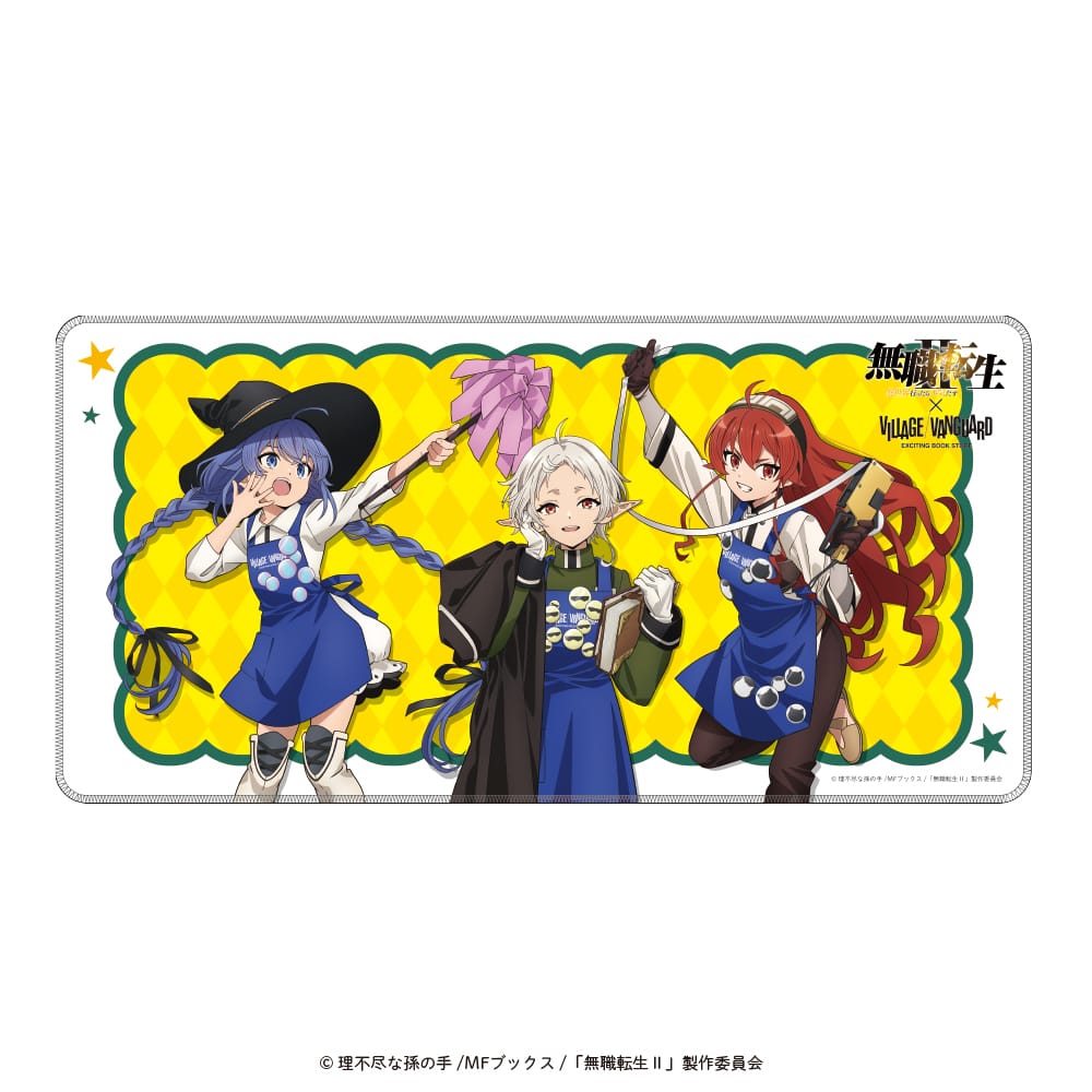 TVアニメ「無職転生II ~異世界行ったら本気だす~」とヴィレッジヴァンガードのコラボグッズが、2026年4月16日より受注販売を開始しました。ラインナップの中から、ロキシー・シルフィエット・エリスの3人がヴィレヴァンのエプロン姿で描かれたデスクマットをご紹介します。